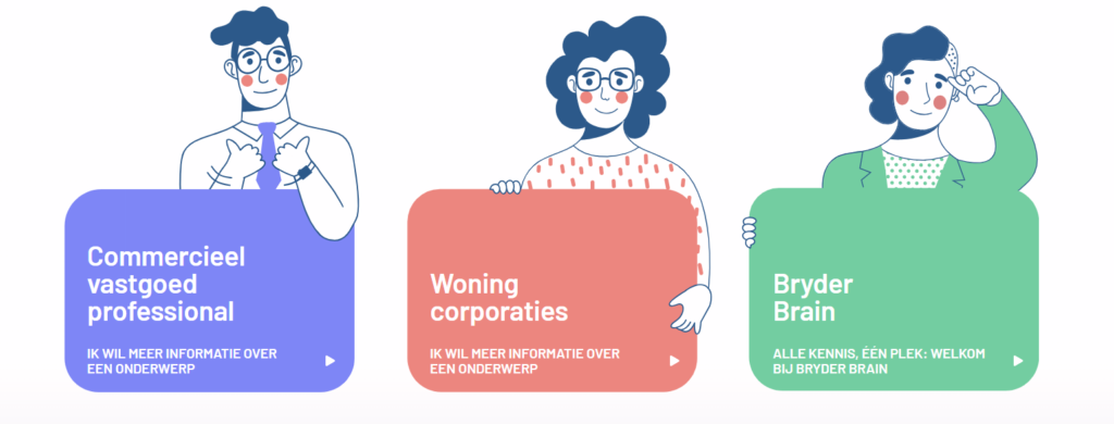 De nieuwe website is gebouwd rondom de drie belangrijkste doelgroepen die dagelijks met Bryder werken: